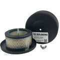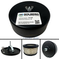 Brand new Solberg air compressor air filter and silencer housing with element. This is a high-quality complete intake filter assembly designed to reduce compressor noise while maintaining optimal airflow performance. The included filter element measures 4-3/8" in outer diameter, 3" inner diameter, and 2-3/8" tall. The housing is 2-1/2" tall (without the thread), 6" in diameter, and features a 1/2" male NPT pipe thread for easy installation.