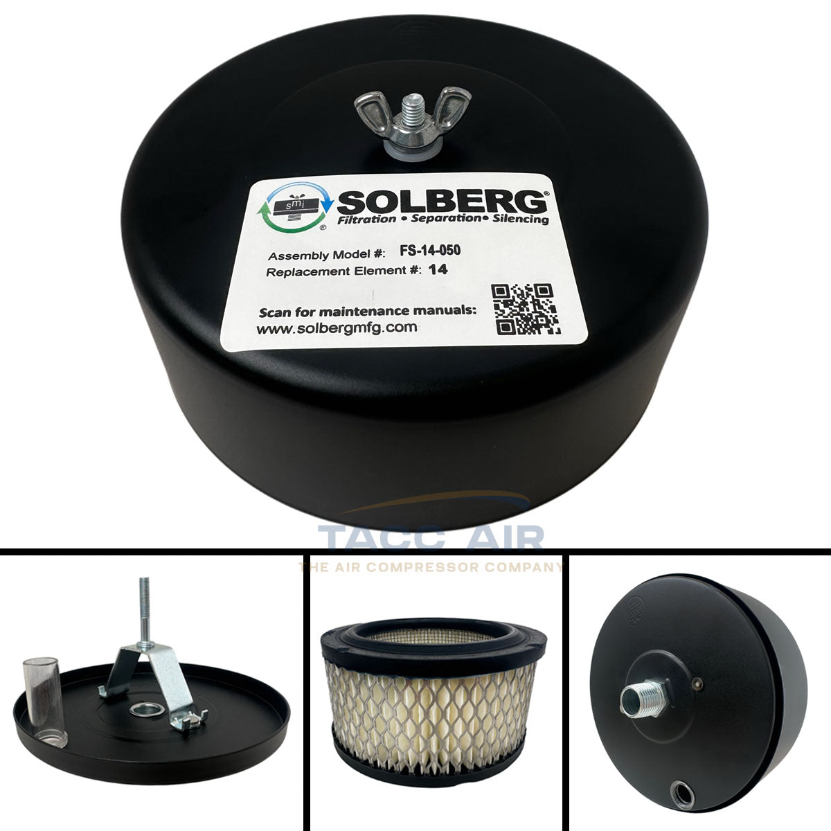 Solberg Air Compressor Filter Silencer with Element – 1/2" NPT, USA Made