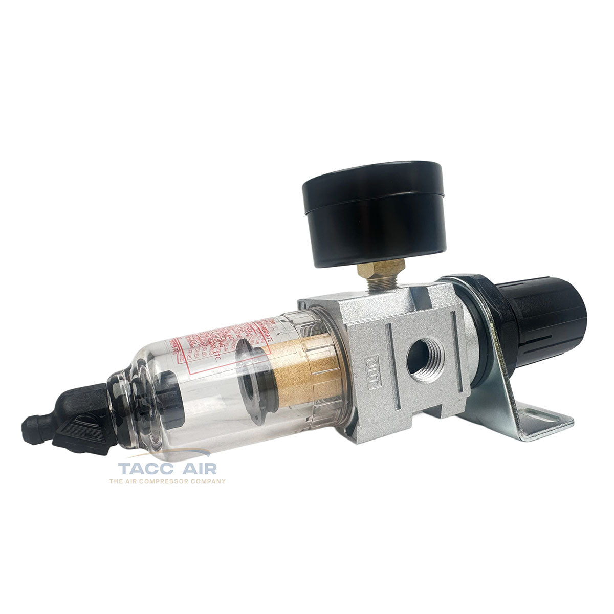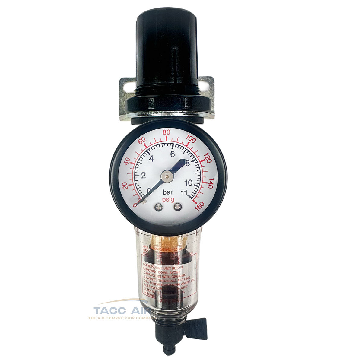 1/4" Inline Air Compressor Regulator & Filter Combo with Pressure Gauge + Wall Mounting Bracket