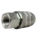Constructed from hardened steel, this coupler is ideal for high-wear environments where durability matters. Unlike brass, steel resists marring and holds up better under frequent connecting and disconnecting. This model also features 6 internal ball bearings for a more secure, tighter grip on the plug—helping extend the service life of the coupler under demanding use.