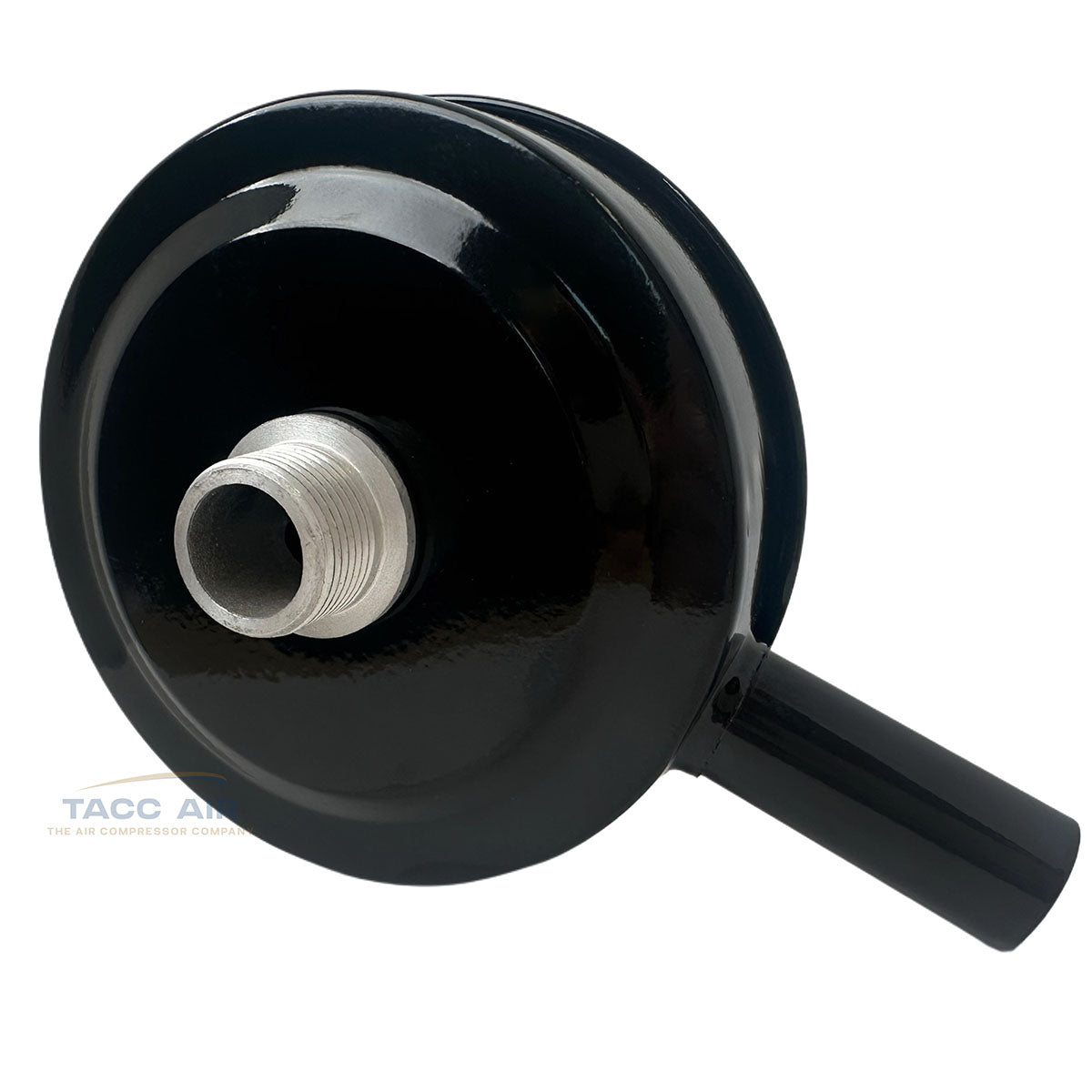 New air compressor universal 1" NPT large air intake filter silencer assembly. Designed for durability and performance, this all-metal assembly features a corrosion-resistant painted housing and a threaded aluminum connector for long-term reliability. Ideal for reducing intake noise while filtering out dust and debris, it helps keep your compressor running cleaner and more efficiently.