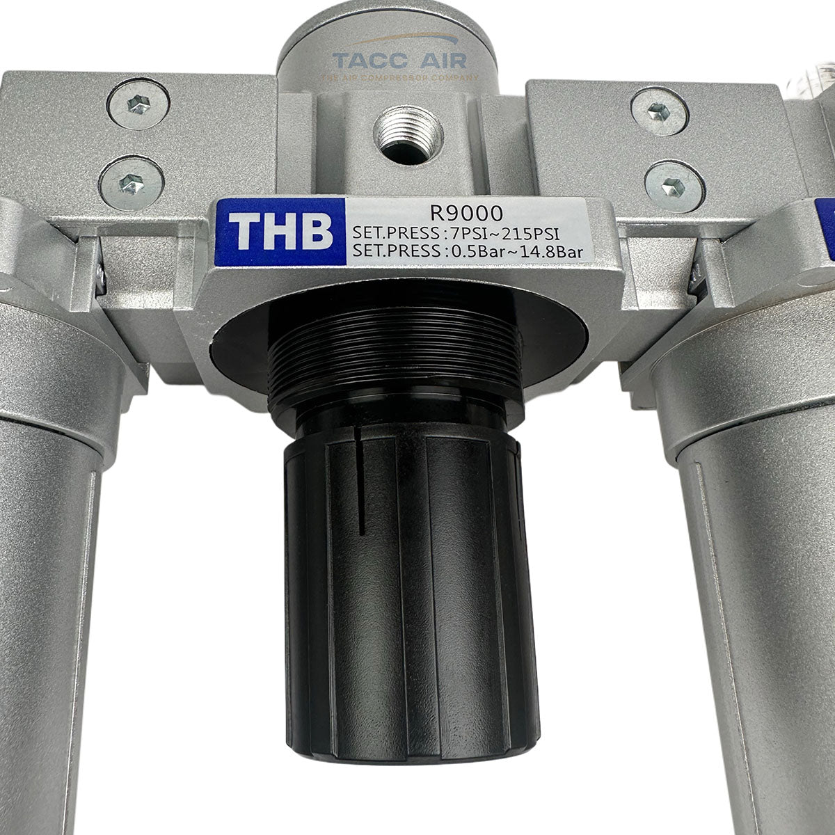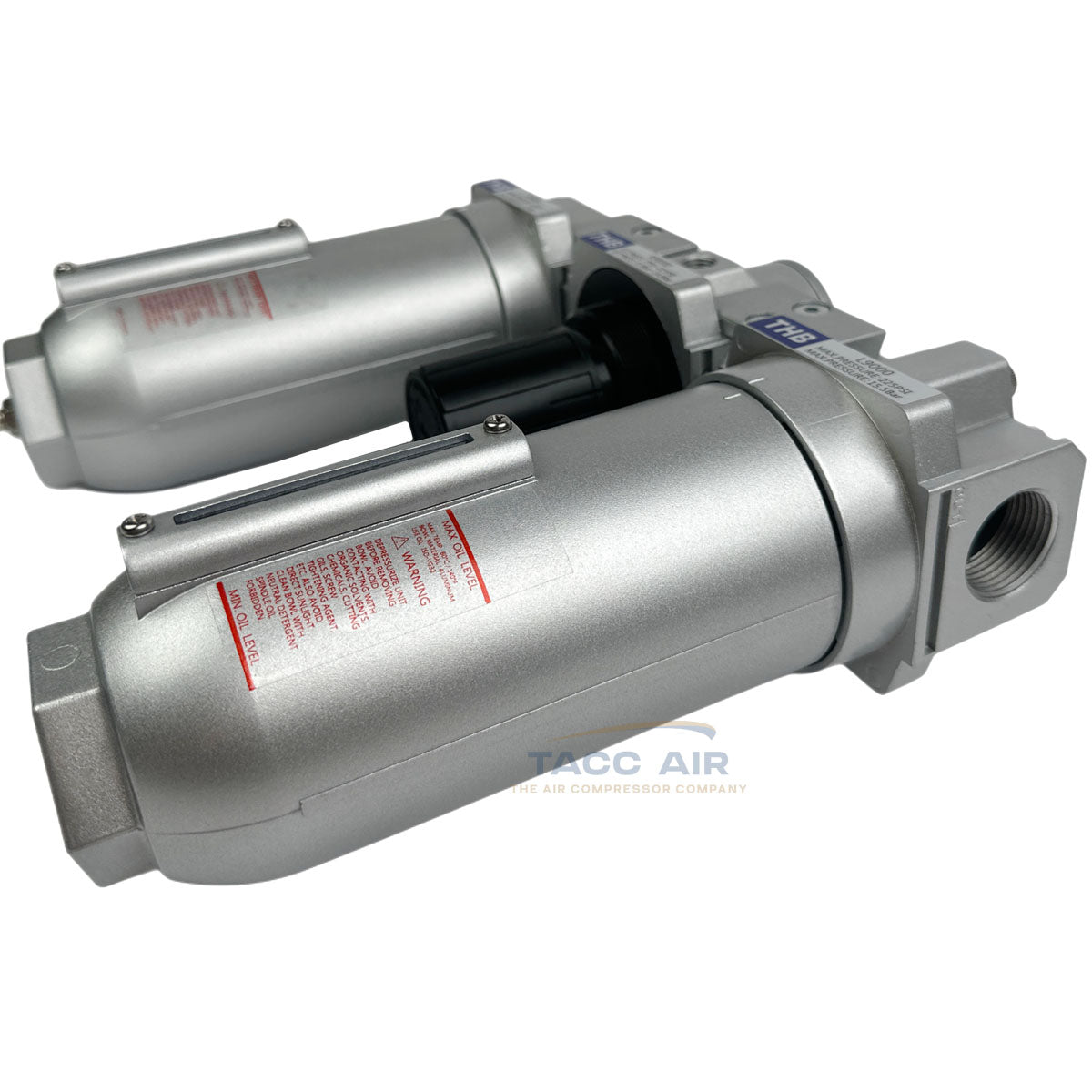 Built for systems requiring high flow and consistent air management, this combo features 1" female NPT inlet and outlet ports, making it compatible with large-volume air delivery setups. Its compact footprint and included wall mounting bracket allow for quick installation in tight or high-traffic areas.