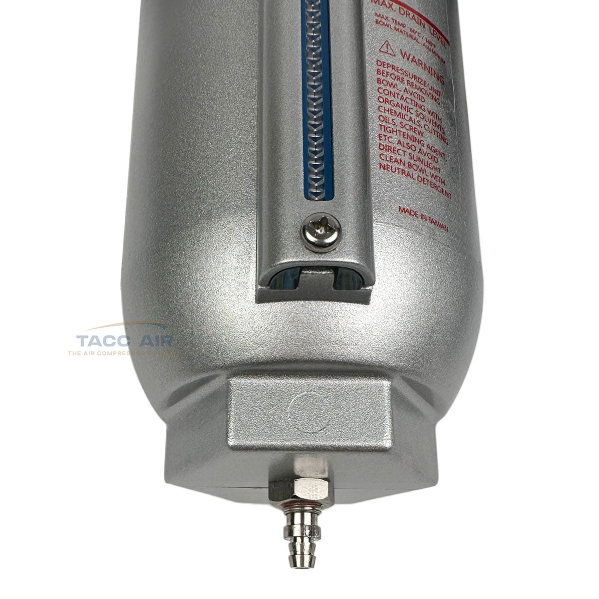 5-Micron Moisture Filter: Removes water and fine particulates. 11.83 oz bowl capacity with integrated sight glass for easy level monitoring. Includes standard manual drain.