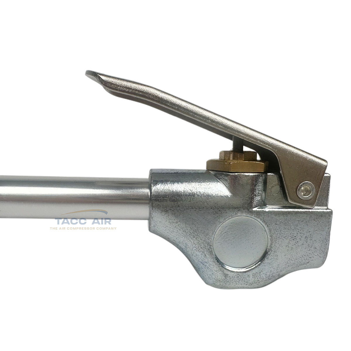 Built for durability and comfort, it features a corrosion-resistant chrome-plated zinc body, aluminum extension, ergonomic thumb trigger for precise airflow control, and a protective rubber tip that helps prevent surface damage during use.