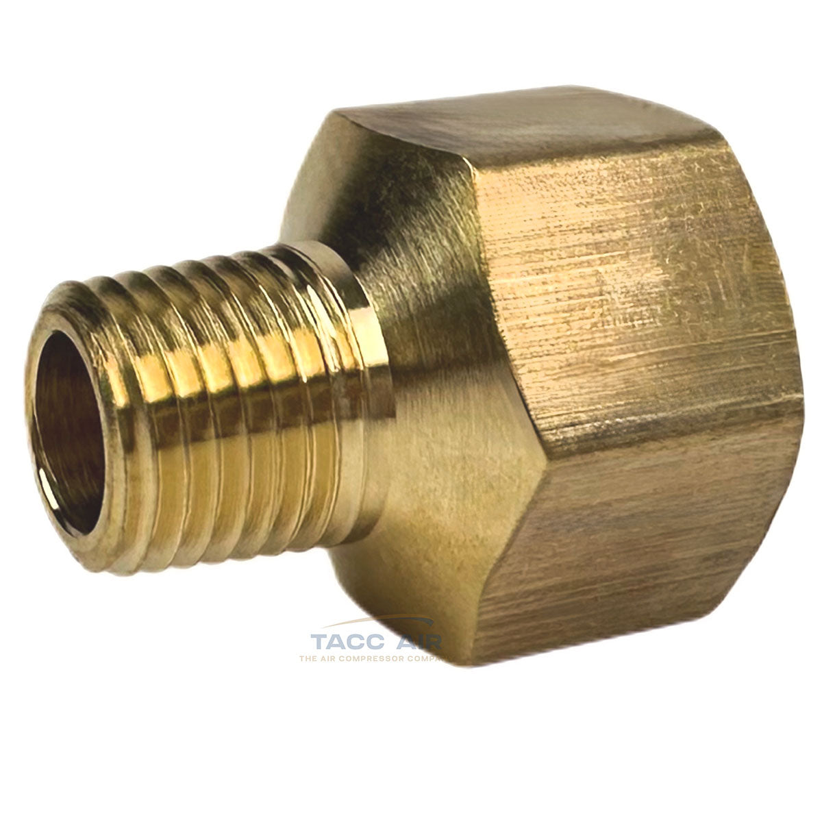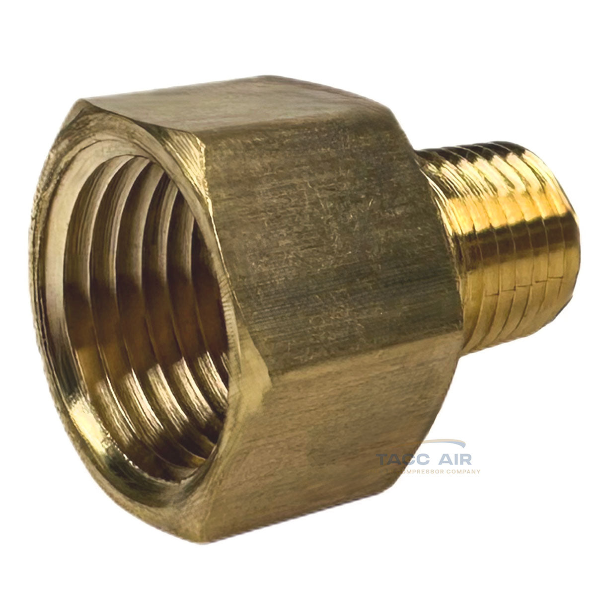 This brass reducer adapter features a 1/2" NPT female thread on one end and a 1/4" NPT male thread on the other, making it ideal for connecting pipes, hoses, or fittings of different sizes in compressed air, gas, oil, or water systems. It’s a reliable solution for creating compact, in-line transitions between components with mismatched thread sizes.