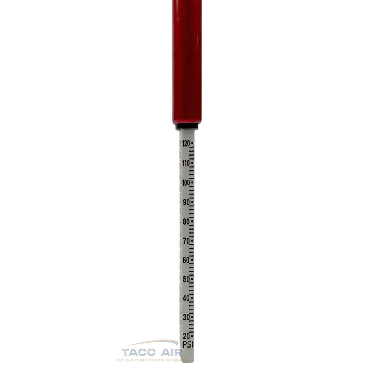 The Tru-Flate 17-527 is a standard, compact, and reliable pencil-style tire pressure gauge designed to read between 20 and 120 psi — ideal for cars, trucks, equipment, bicycles, motorcycles, minibikes, scooters and more. Its slim, pocket-friendly design makes it easy to carry and use whenever you need a quick and reliable pressure check.