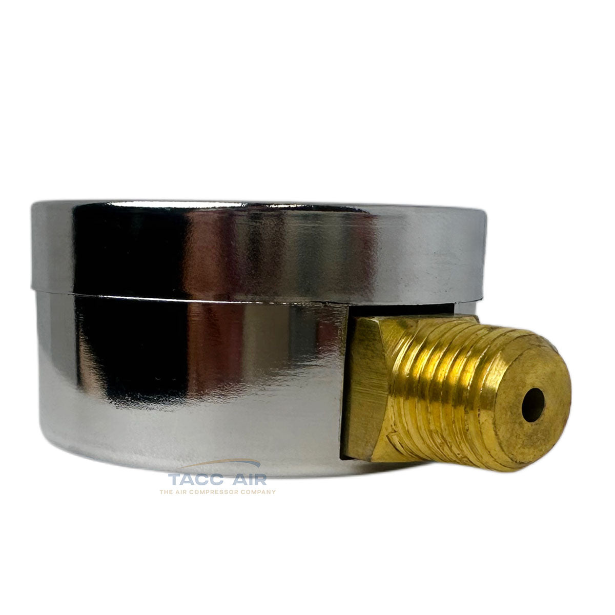This durable and reliable pressure gauge is designed for a wide range of uses, offering precise pressure readings up to 300 PSI. The 2-inch dial and standard 1/4" NPT side / lower mount threads make it easy to install on compressors, tanks, and other systems. Built with a chrome steel case and bezel, this gauge is both rugged and corrosion-resistant.