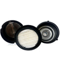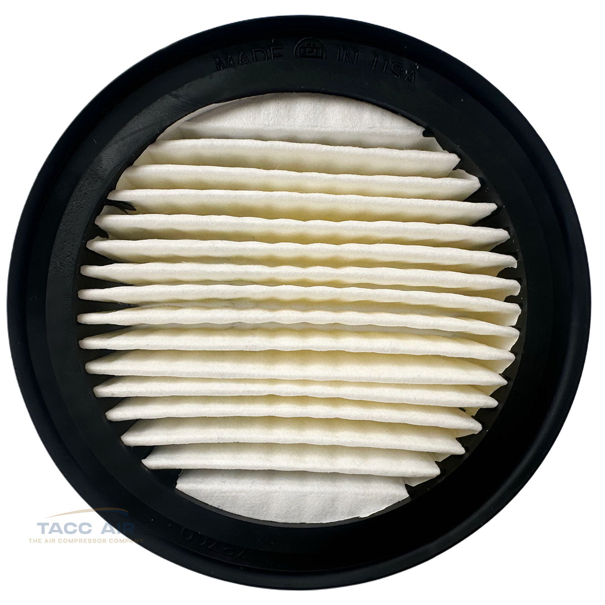 Includes pancake filter element measuring 2-5/8" in diameter at the insertable portion of the element, 3" diameter at the widest point around the seal of the element, and 1-3/8" tall