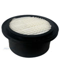 Brand new Solberg air compressor air filter and silencer housing with element. This is a high-quality complete intake filter assembly designed to reduce compressor noise while maintaining optimal airflow performance. The included filter element measures 2-5/8" in diameter at the insertable portion of the element, 3" diameter at the widest point around the seal of the element, and 1-3/8" tall. The housing is 2.75" tall (without the thread), 3.25" in diameter, and features a 3/4" male NPT pipe thread connection for easy installation.
