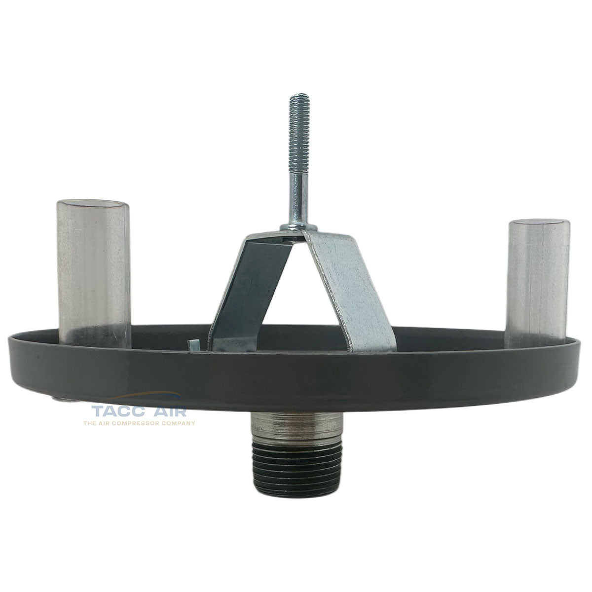 Brand new Solberg air compressor air filter and silencer housing with element. This is a high-quality complete intake filter assembly designed to reduce compressor noise while maintaining optimal airflow performance. The included filter element measures 4-3/8" in outer diameter, 3" inner diameter, and 2-3/8" tall. The housing is 2-1/2" tall (without the thread), 6" in diameter, and features a 3/4" male NPT pipe thread for easy installation.