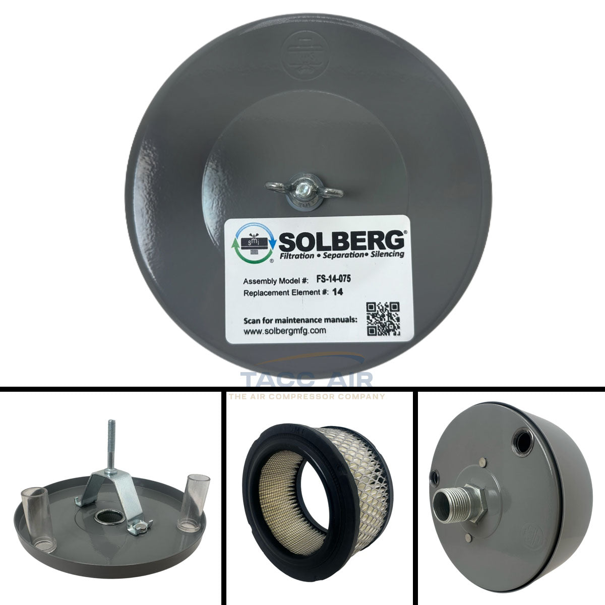 Solberg Air Compressor Filter Silencer with Element – 3/4" NPT, USA Made