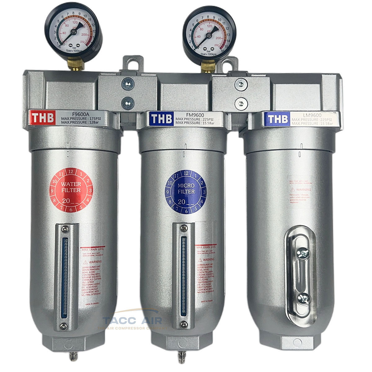3/4" Industrial-Grade 3-Stage Compressed Air Filter, Oilesser & Desiccant Dryer System