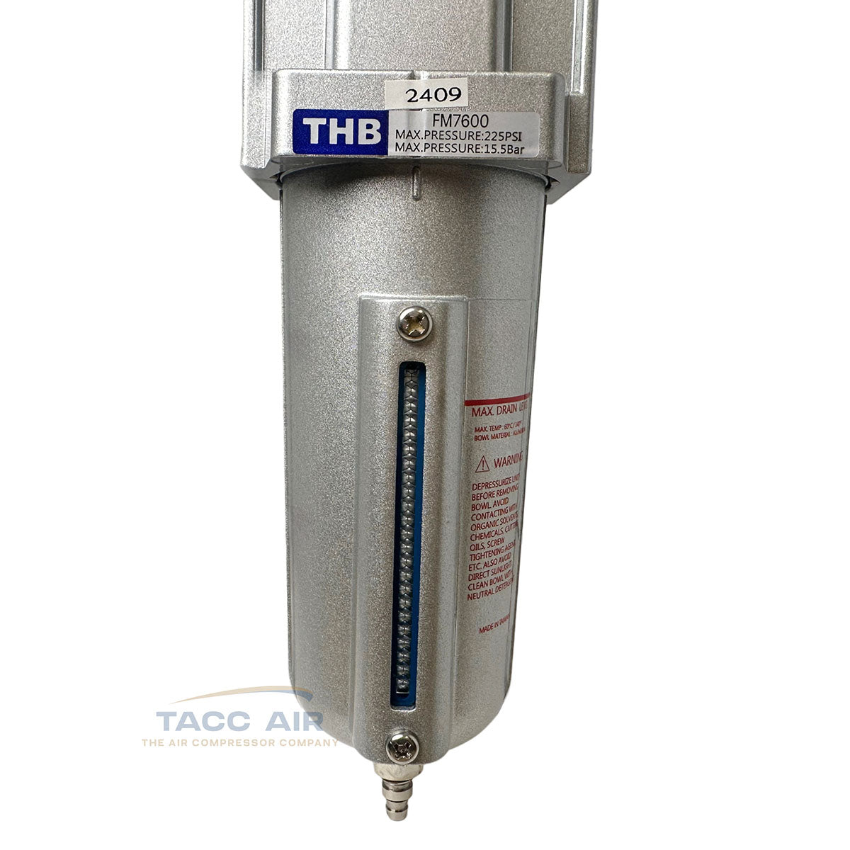 Manual Push-Button Drain Valve for easy maintenance (Hose barb on drain so a hose can be attached if needed to drain moisture to a defined location)