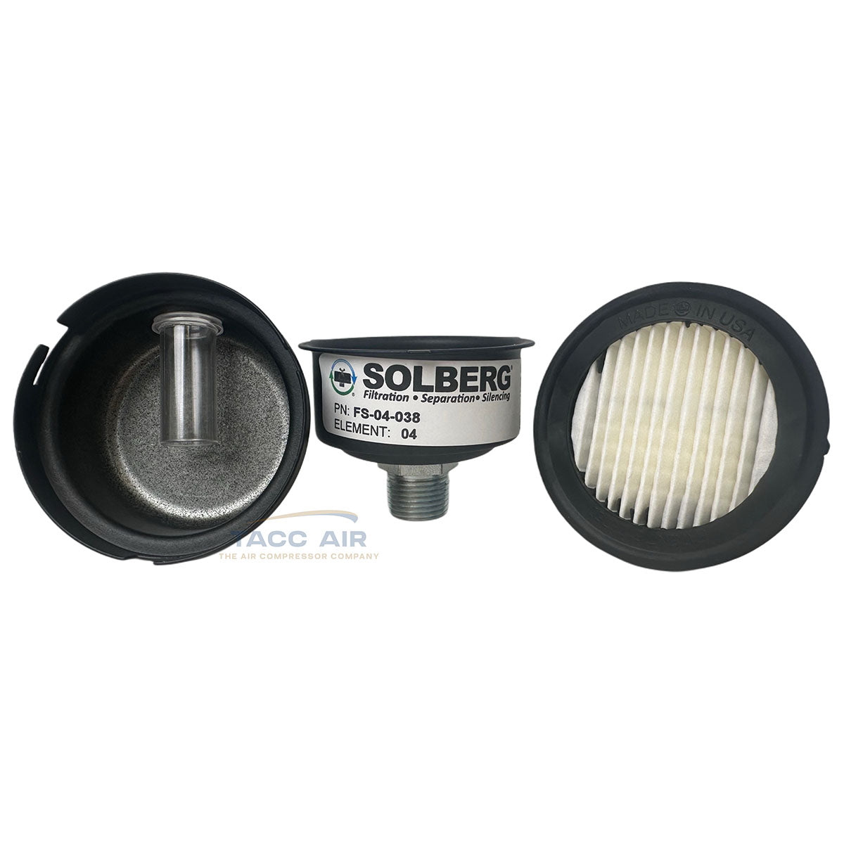 Compact Solberg Air Compressor Filter Silencer with Element – 3/8" NPT, USA Made