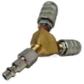 1/4" Air Compressor Y Splitter Air Hose Distribution Manifold with Industrial Style Couplers – 4 Piece Assembly