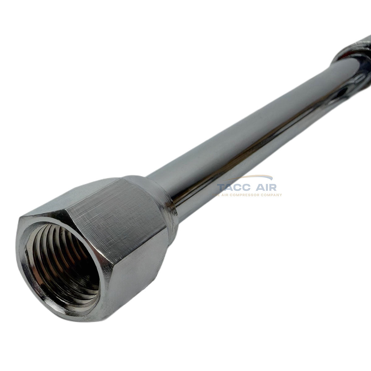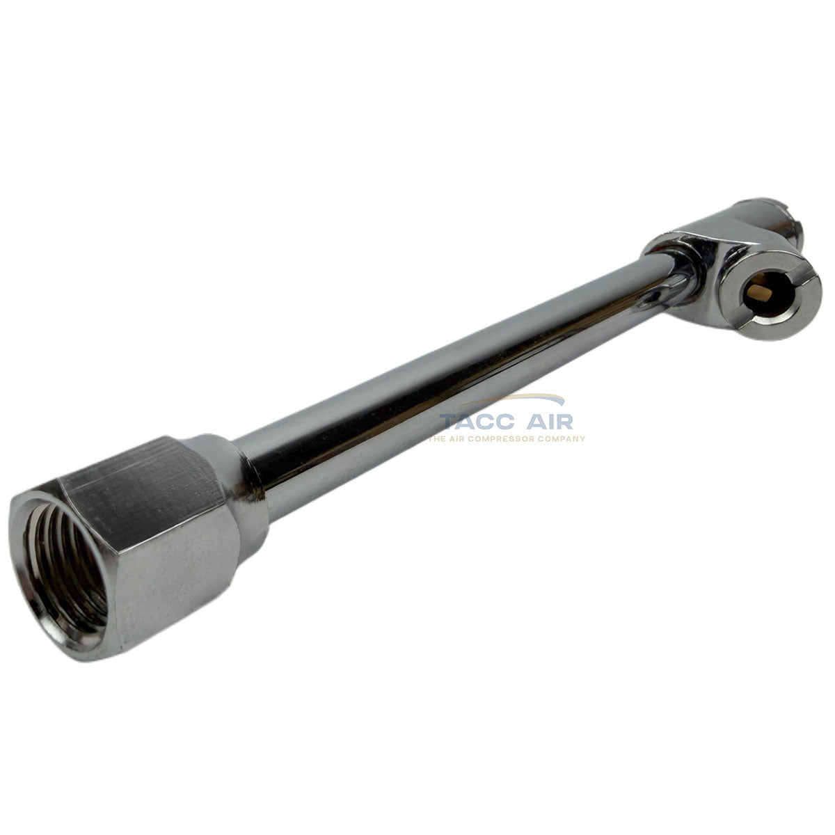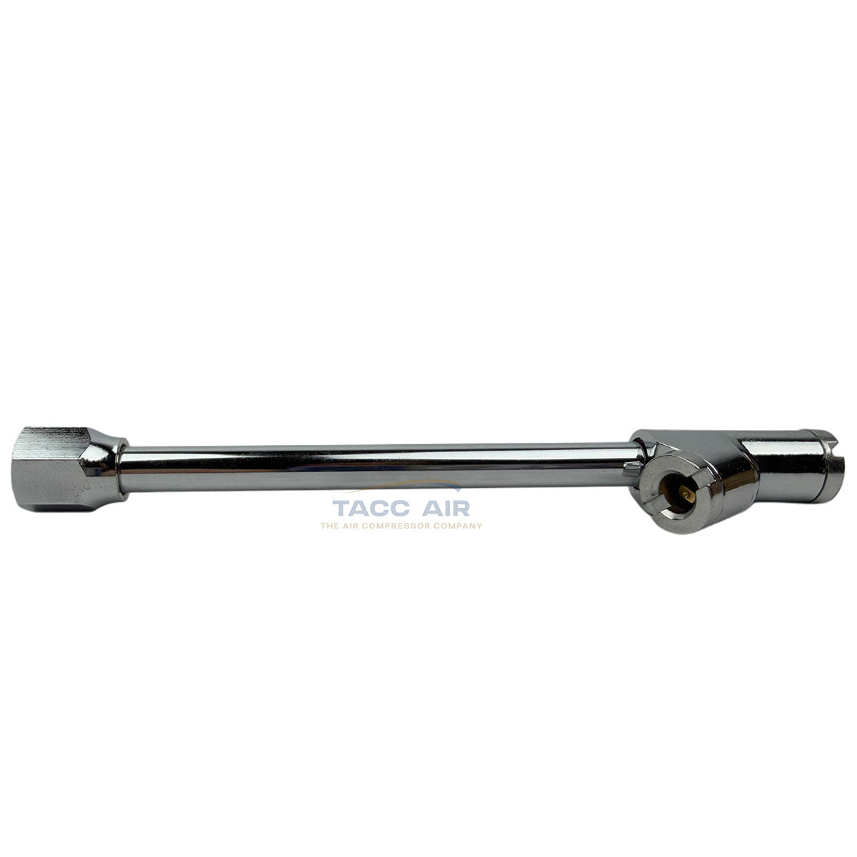 This Amflo 108 dual-foot straight air chuck is designed for dependable performance in professional commercial shop environments. The 6" straight body and dual-head design make it easy to access standard and hard-to-reach valve stems, especially on trucks, trailers, RVs, and dual-wheel assemblies.