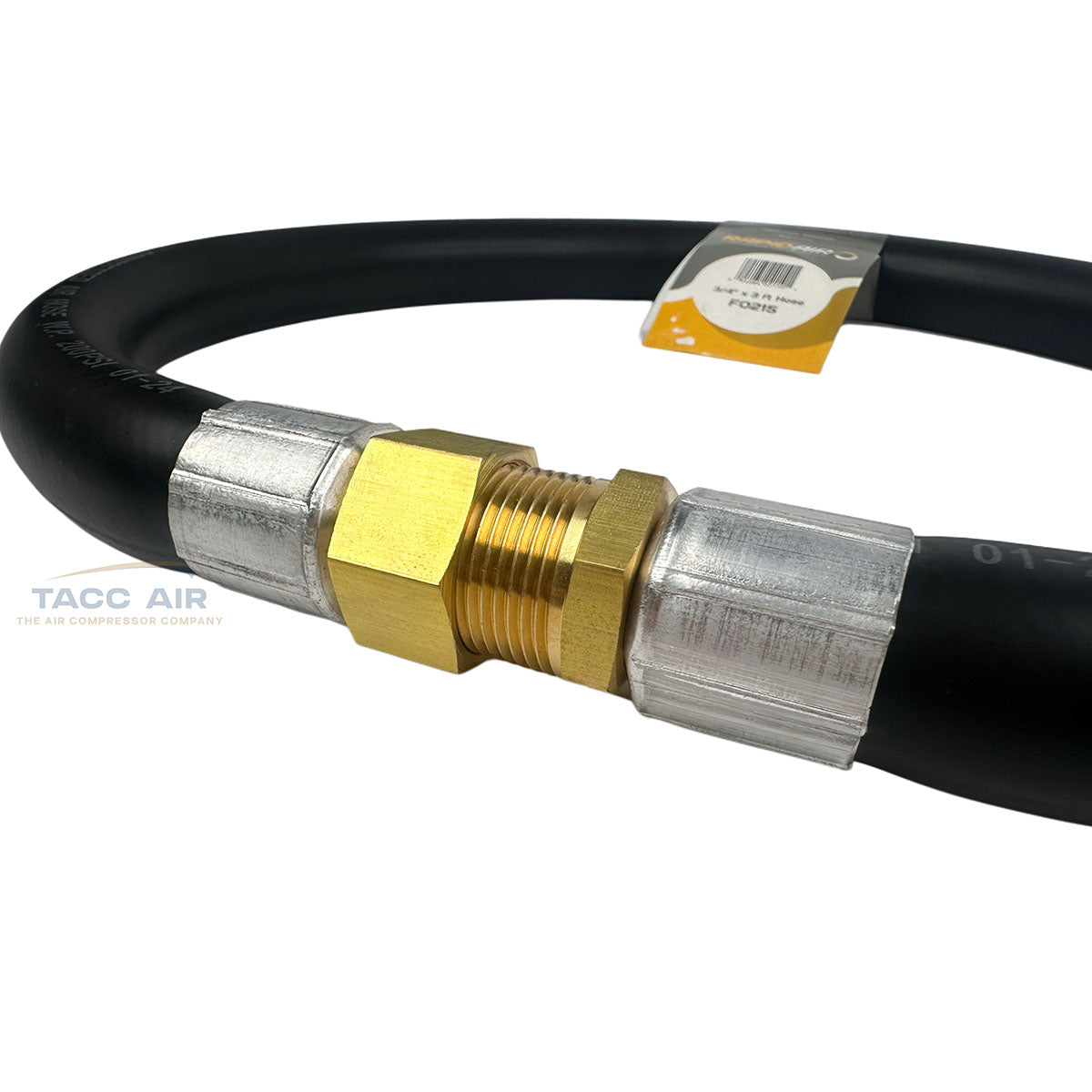 The RapidAir F0215 is a heavy duty 3' foot rubber air hose whip designed as a jumper hose to connect air compressors, pneumatic tools, and stationary equipment to rigid air piping systems like MaxLine and FastPipe. Its short, flexible design helps prevent vibration, stress, and movement from damaging or loosening your main compressed air lines making it a key safety and durability component in air system installations.