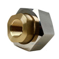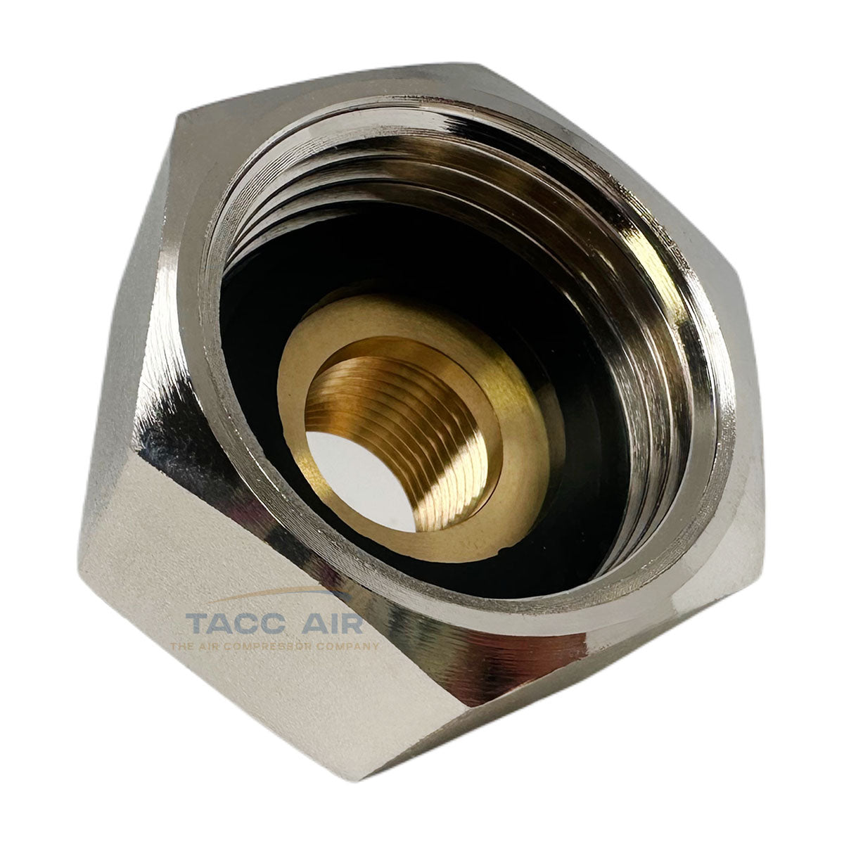 Reduces down to a 1/2" female NPT brass fitting (Note: 1/2" measures approximately 3/4" in diameter)
