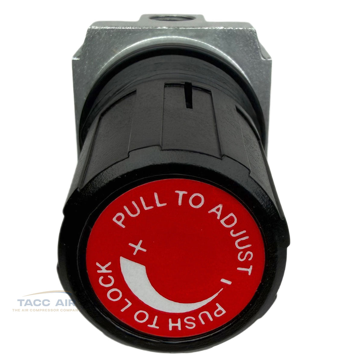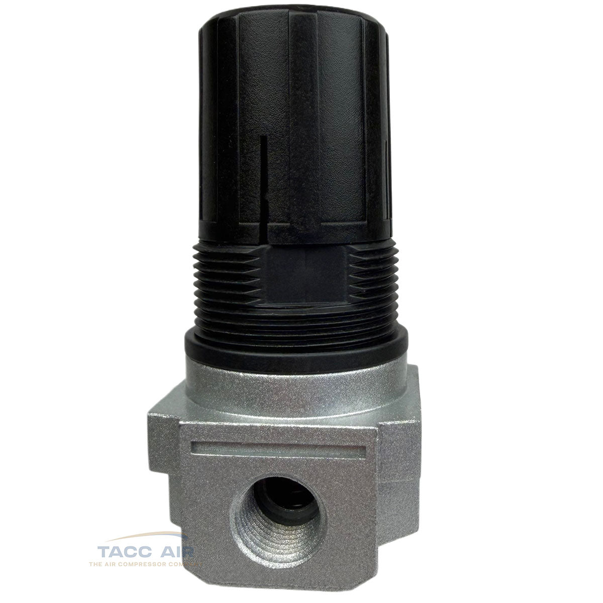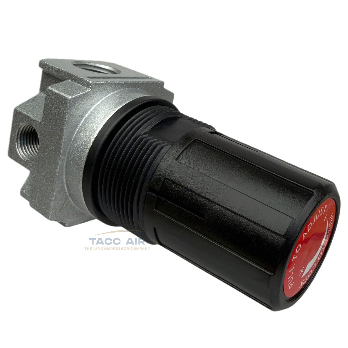 The regulator is directional, with a clearly marked arrow indicating the correct airflow direction.