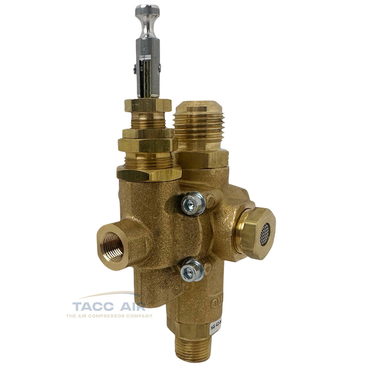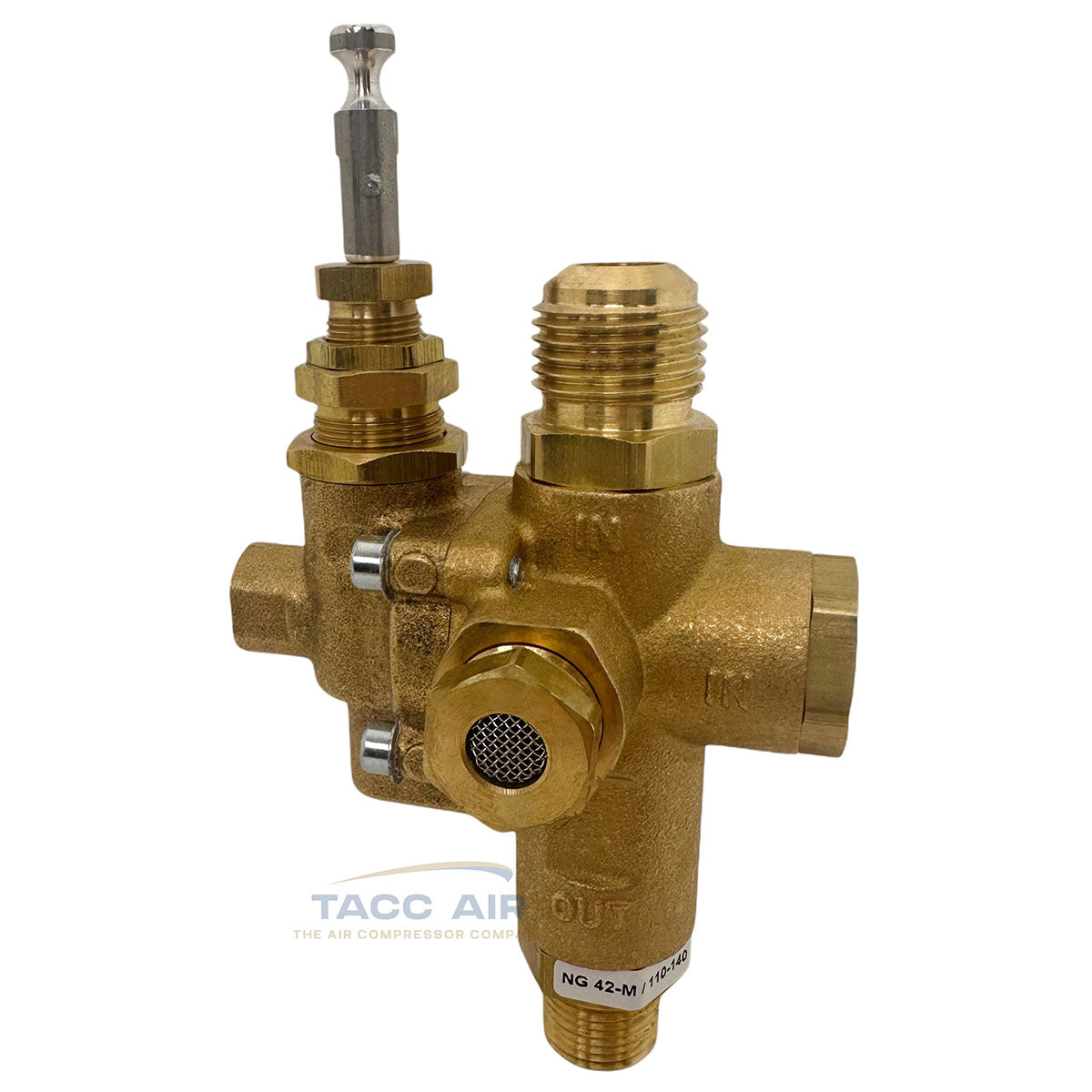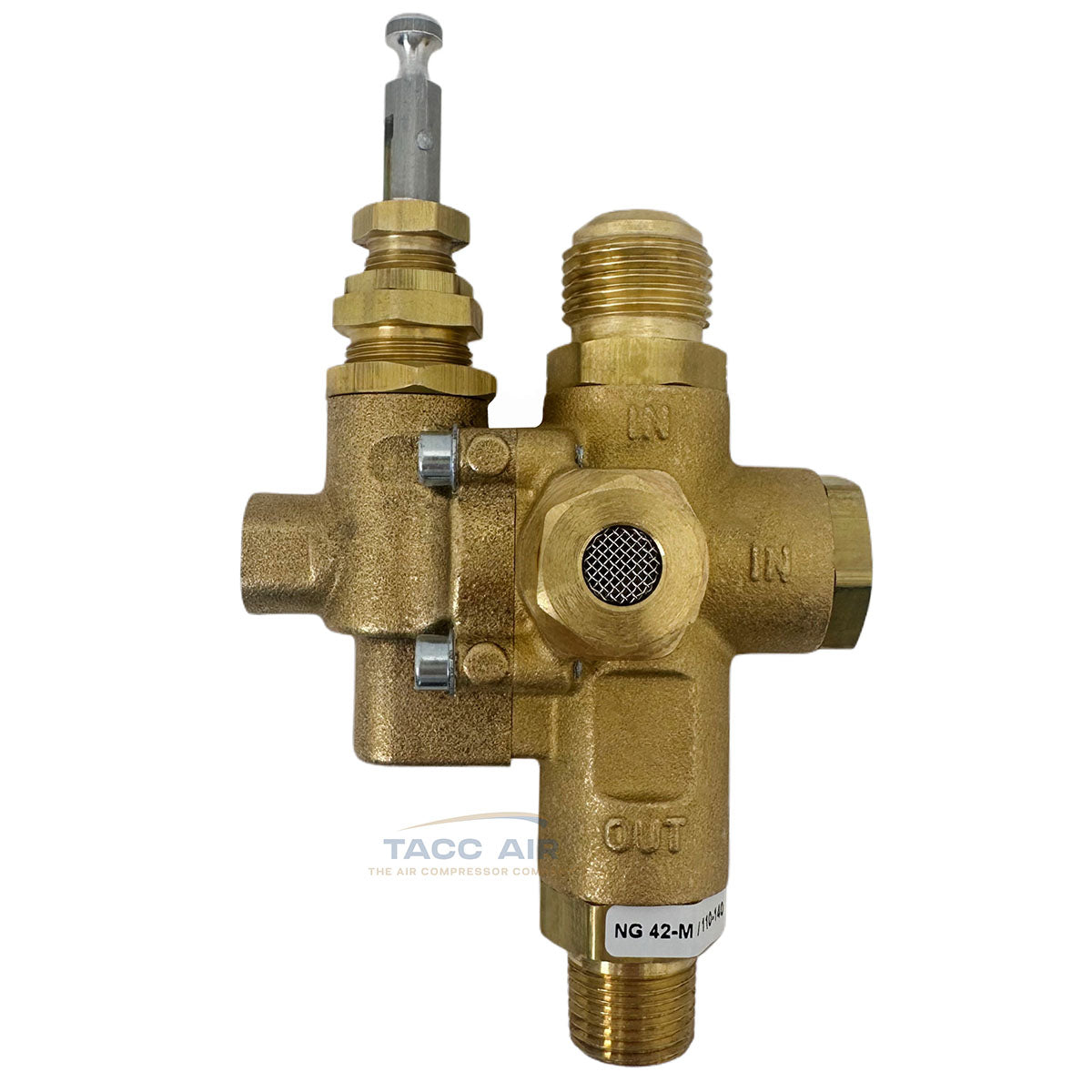 With a pre-set pressure range of 110-140 PSI, this valve can be adjusted 30-40 PSI up or down to match your specific needs depending on model of compressor. It is rated to handle up to 30 SCFM, ensuring optimal performance for gas engine compressors. The valve’s 1/2" flare inlet connects directly to your main airline from the compressor pump, while the 3/8" male NPT outlet connects to your compressors air tank.