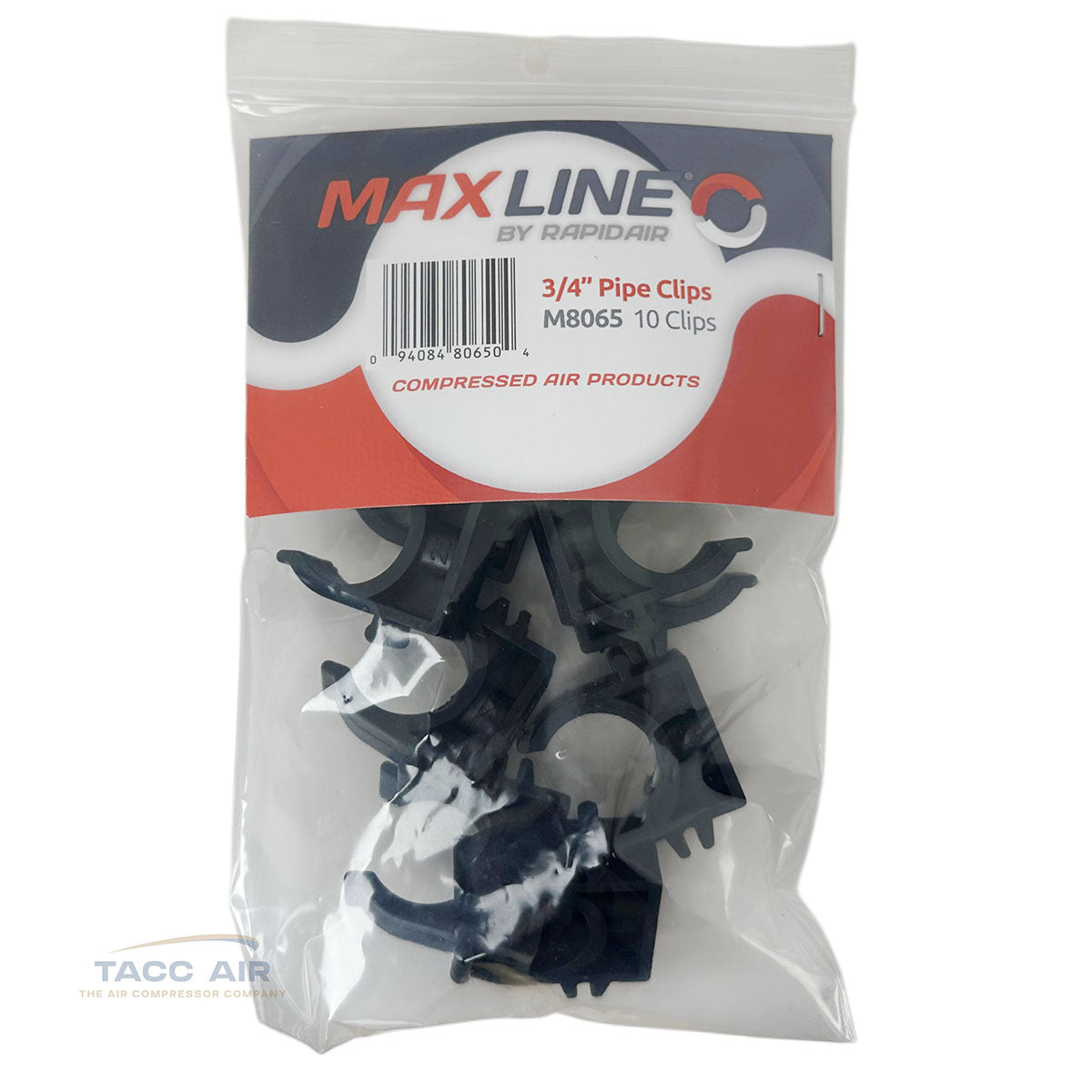 The MaxLINE M8065 Tubing Clips are essential for securely mounting your 3/4" MaxLINE compressed air tubing. Designed specifically for use with MaxLINE 3/4" air piping by RAPIDAIR, these clips help you achieve a clean, professional installation in any shop, garage, or industrial setting.