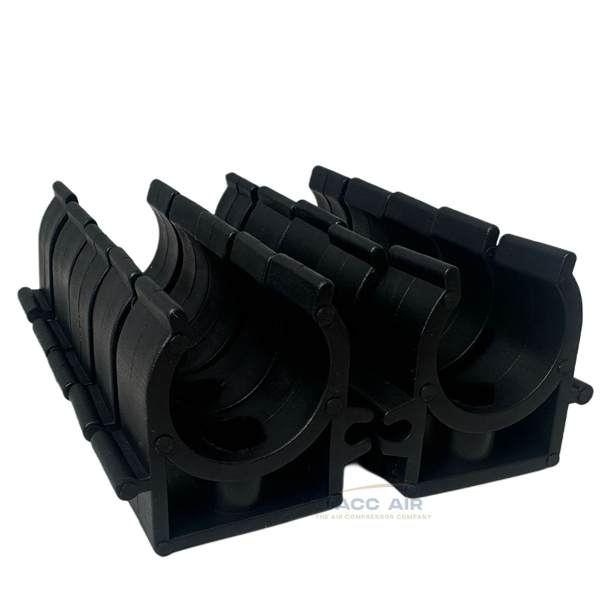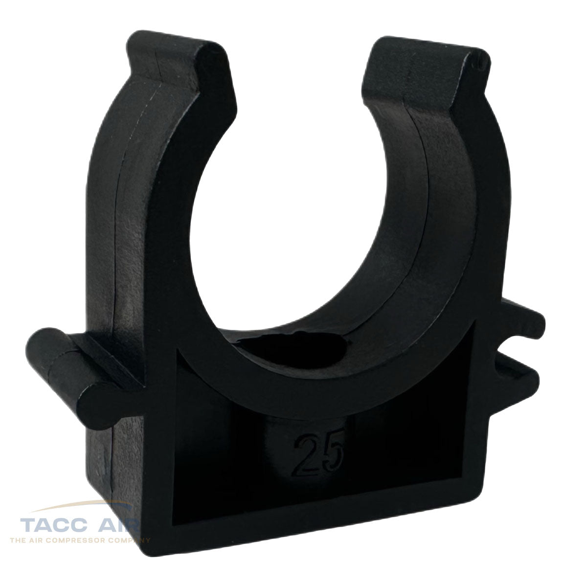 Constructed from durable black nylon, each clip features a single mounting hole for quick and straightforward installation on walls, ceilings, or other flat surfaces. These clips ensure reliable tubing support, maintaining proper alignment and reducing stress on your air line system.