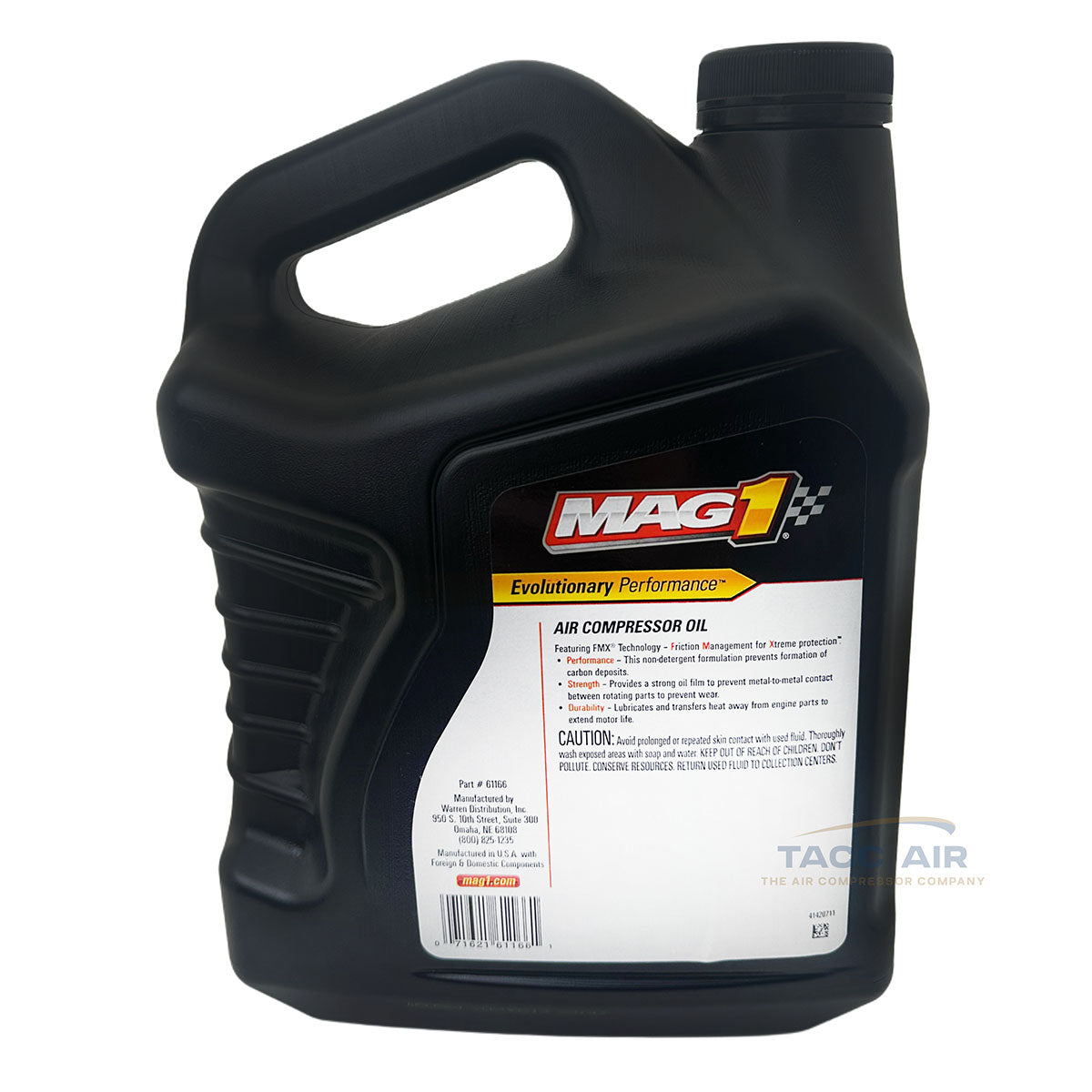 MAG1 Air Compressor Lubricating Oil is specially formulated to maximize your compressor pump and valve life. This ISO-100 (SAE 30W) non-detergent air compressor oil is the top choice for any standard piston type oil-lubricated air compressors. Using detergent oils can cause carbon to form, which shortens your compressor's life. This non-detergent oil extends pump life and helps keep your compressor operating at its optimum performance level.