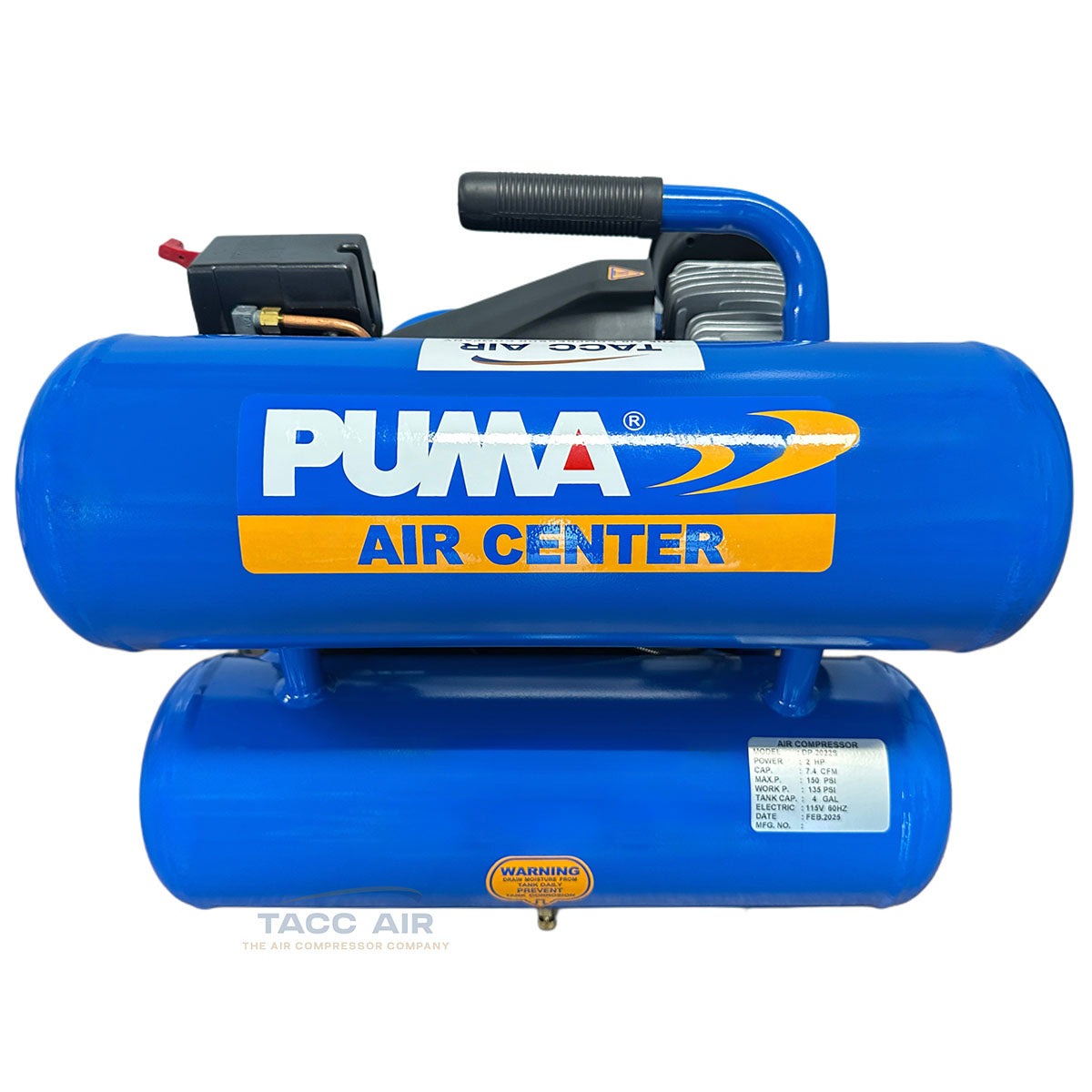 The Puma DP2022S is a compact, job-site-ready air compressor built for contractors and professionals who need dependable air power in a portable design. With its oil-lubricated pump, twin 2-gallon tanks, and durable construction, this unit delivers reliable performance for nailers, staplers, and other pneumatic tools.