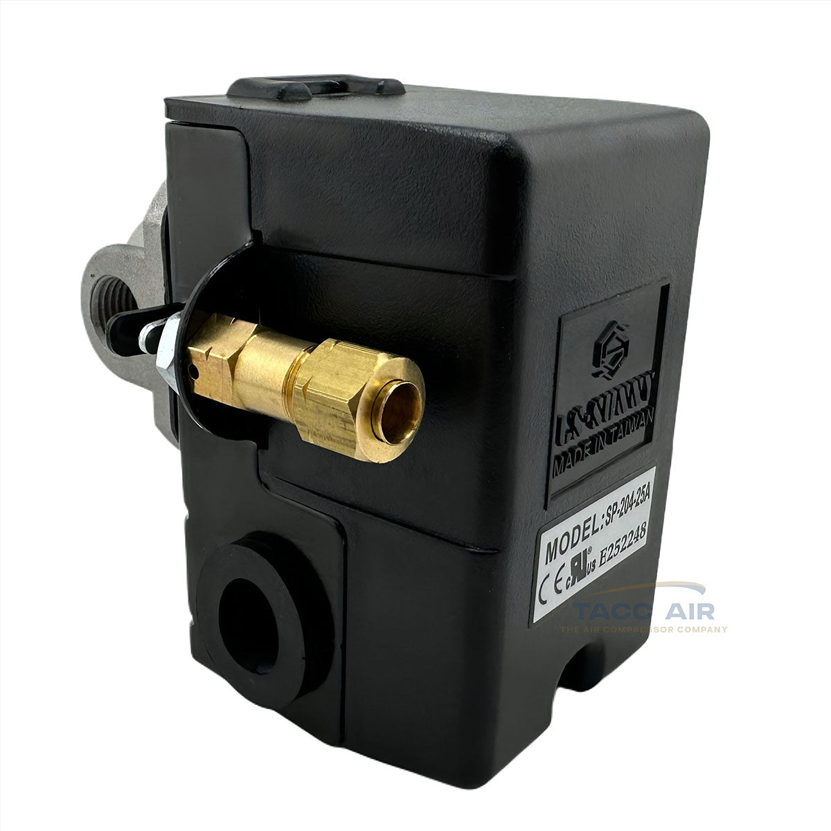 Whether you're upgrading an older unit or need a dependable switch for a high-draw system, this 4-port pressure switch is a durable and flexible solution. Perfect for compressors operating without a magnetic starter or for setups needing multiple accessory connections.