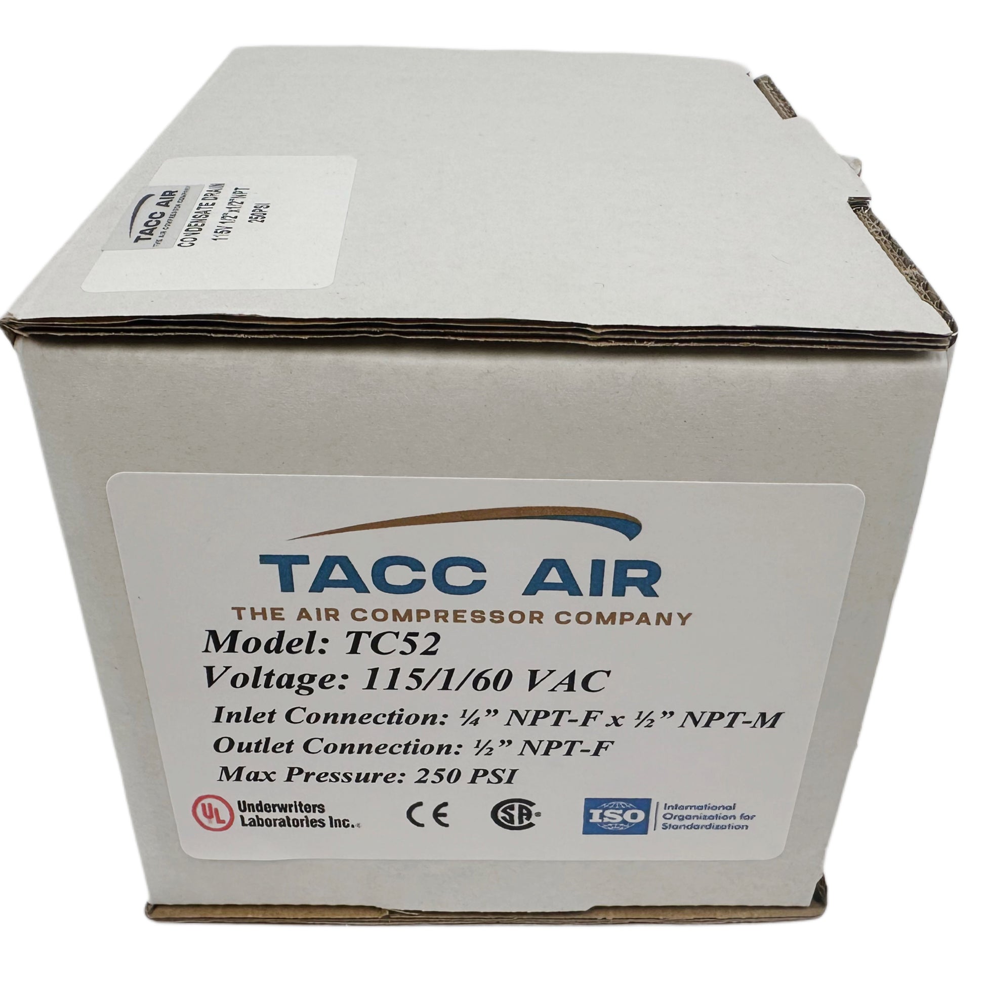 The Tacc Air TC52 Electronic Timer Drain is a top quality, commercial-grade condensate / moisture drain valve engineered for air compressors and compressed air tanks. Built to withstand rigorous industrial environments, it’s backed by ISO, UL, CE, and CSA certifications—surpassing the standards of many competitors.